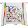 What a beautiful state! This original design celebrates the state of North Carolina—from Cape Fear to Asheville to Duck to Kitty Hawk, where man's first flight took place on December 17, 1903. The design is printed using the labor intensive hand-swipe silk-screen process with 12 colors (that's 12 screens used for each towel!). Three cheery woven stripes run down both sides and hand-dyed rick-rack at the top and bottom add a charming vintage touch. All this delightfully presented in a fab organdy re-usable pouch ready for gifting!