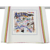 This original design celebrates The Last Frontier - the state of Alaska! The design is printed using the labor intensive hand-swipe silk-screen process with 12 colors (that's 12 screens used for each towel!). Three cheery woven stripes run down both sides and hand-dyed rick-rack at the top and bottom add a charming vintage touch. All this delightfully presented in a fab organdy re-usable pouch ready for gifting!